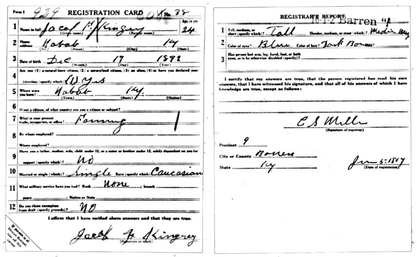 | Kingrey, Jacob F | WWI | Draft Card | Sheila Wisdom-Hardin |