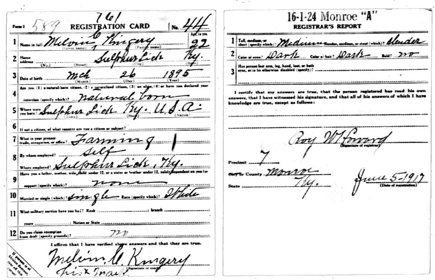 | Kingery, Melvin | WWI | Draft Card | Sheila Wisdom-Hardin |