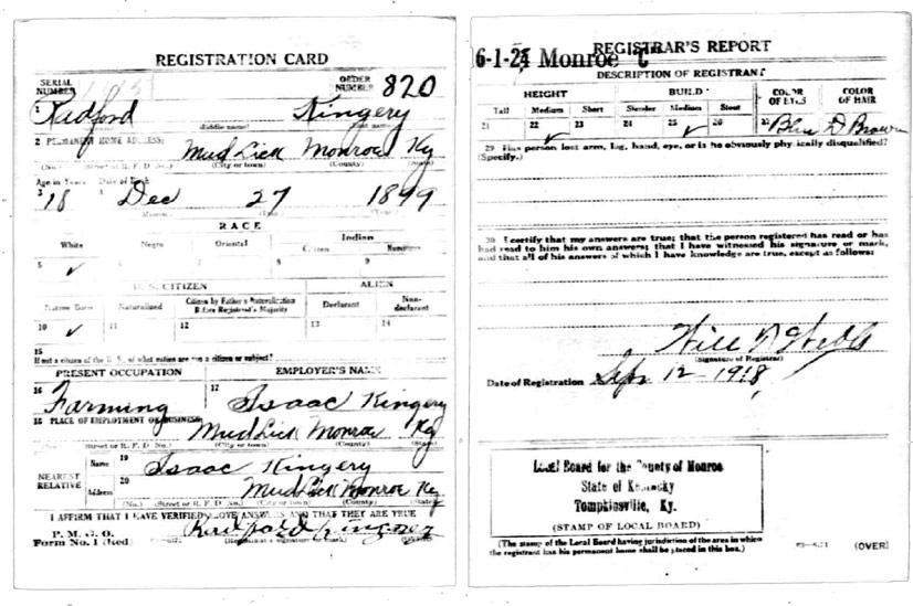 | Kingery, Radford | WWI | Draft Card | Sheila Wisdom-Hardin |
