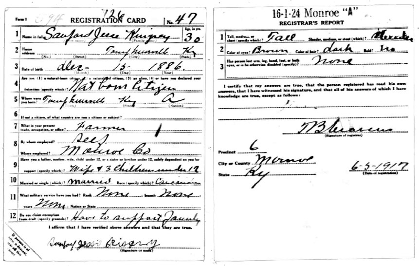 | Kingrey, Sanford Jesse | WWI | Draft Card | Sheila Wisdom-Hardin |