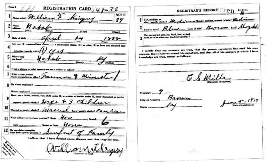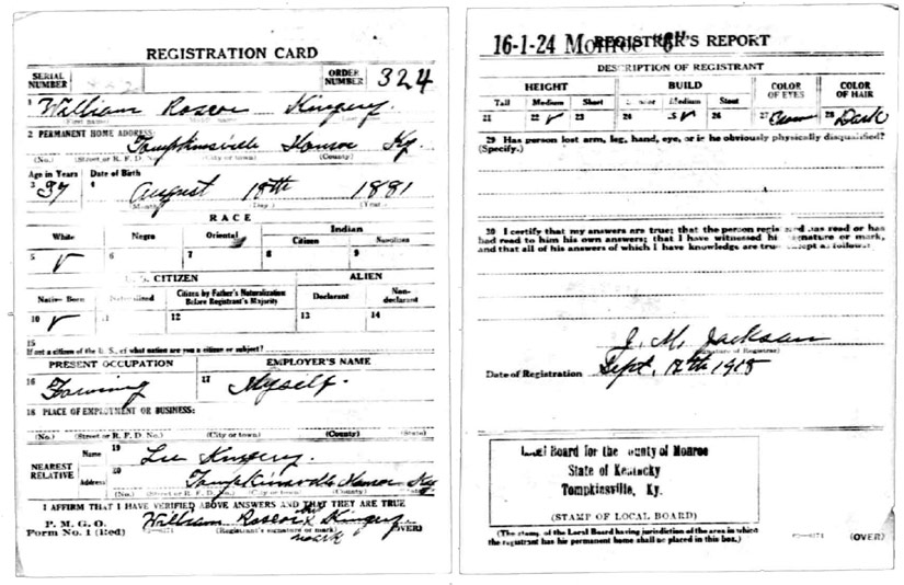 | Kingrey, William F | WWI | Draft Card | Sheila Wisdom-Hardin |