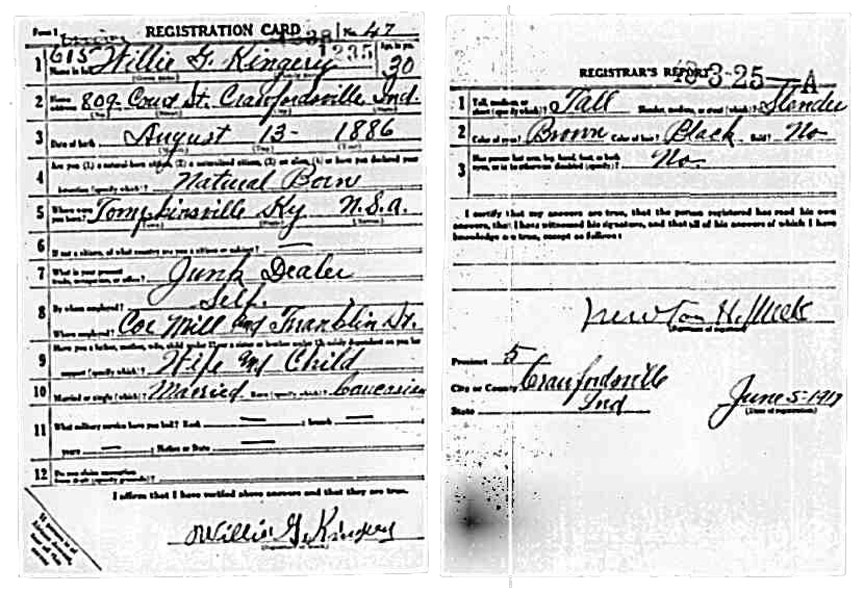 | Kingery, Willie G | WWI | Draft Card | Sheila Wisdom-Hardin |