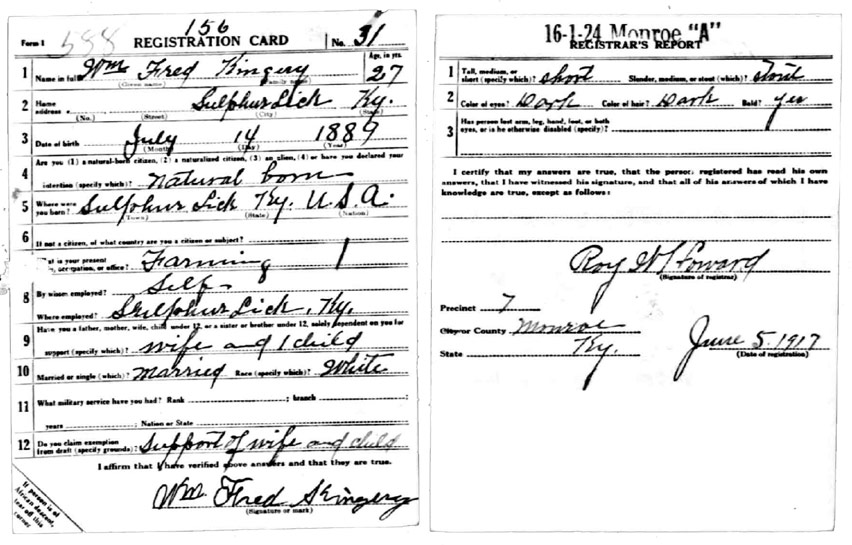 | Kingery, Wm Fred | WWI | Draft Card | Sheila Wisdom-Hardin |