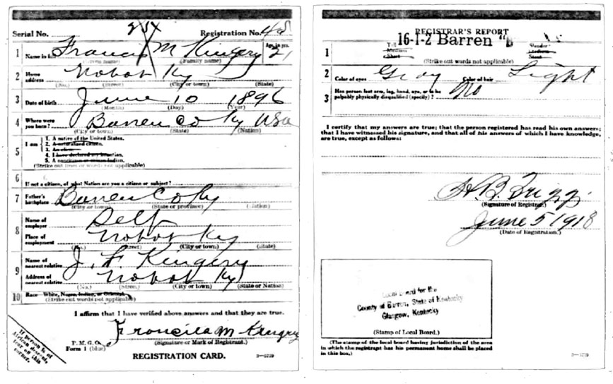 | Kingery, Francis | WWI | Draft Card | Sheila Wisdom-Hardin |