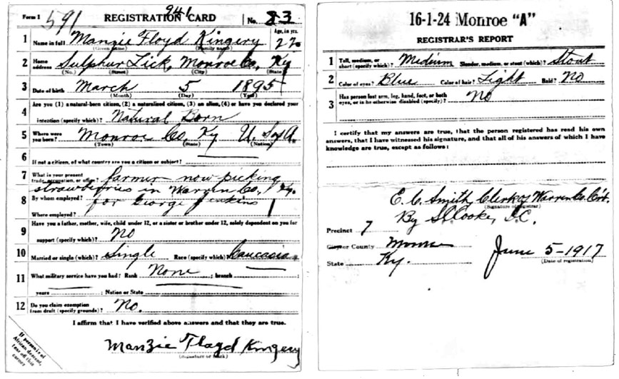 | Kingery, Mannie Floyd | WWI | Draft Card | Sheila Wisdom-Hardin |