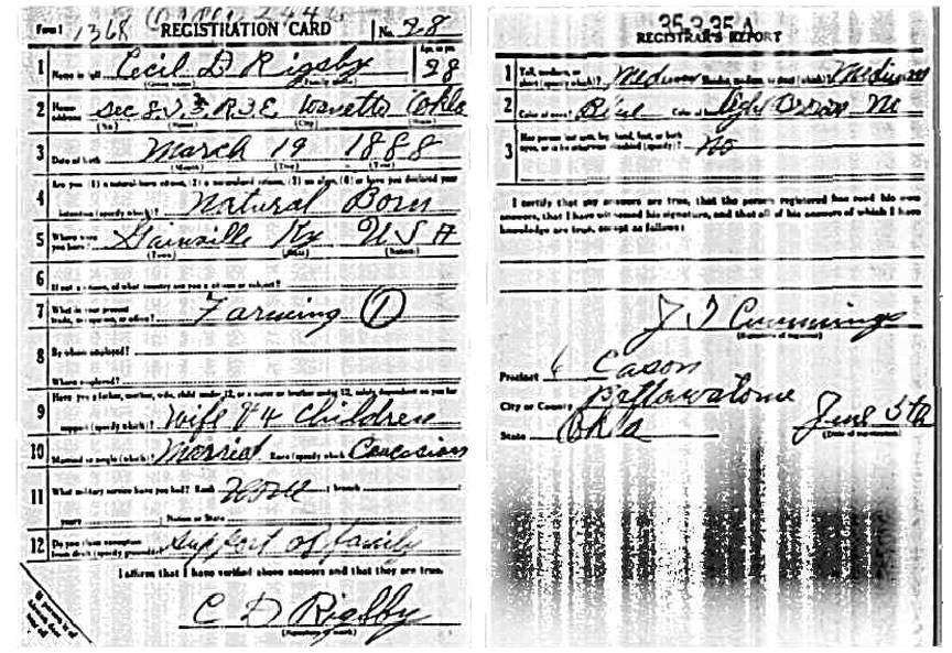 | Rigsby, Cecil | WWI | Draft Card | Sheila Wisdom-Hardin |