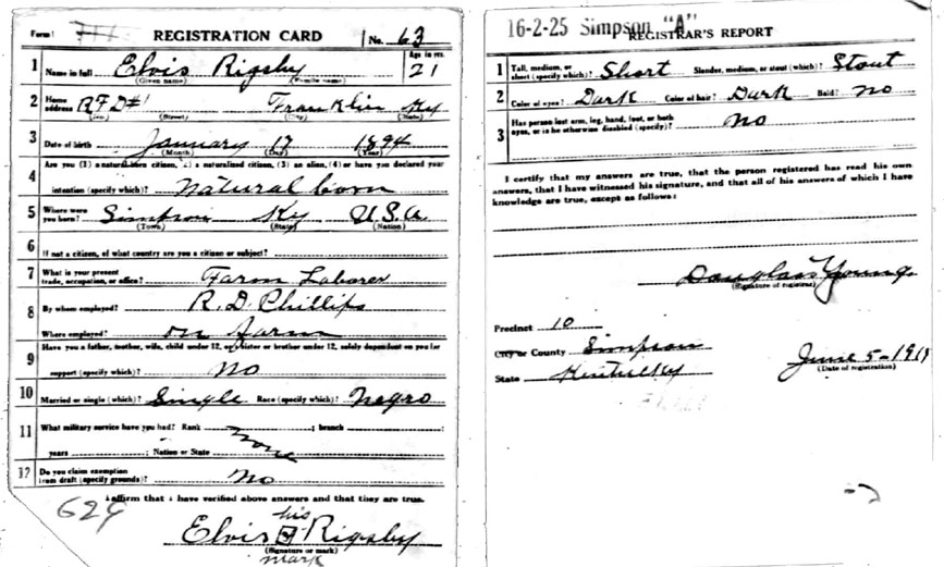 | Rigsby, Elvis | WWI | Draft Card | Sheila Wisdom-Hardin |