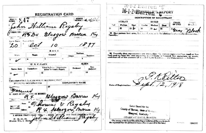 | Rigsby, John William | WWI | Draft Card | Sheila Wisdom-Hardin |