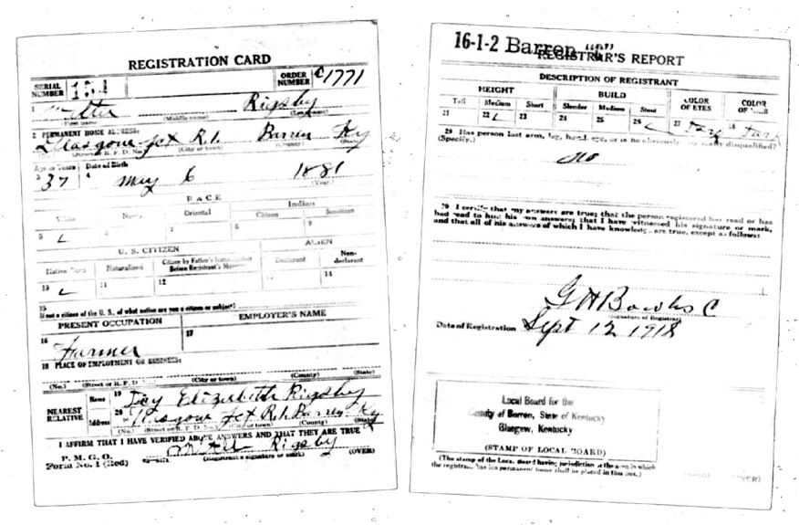| Rigsby, Walter | WWI | Draft Card | Sheila Wisdom-Hardin |