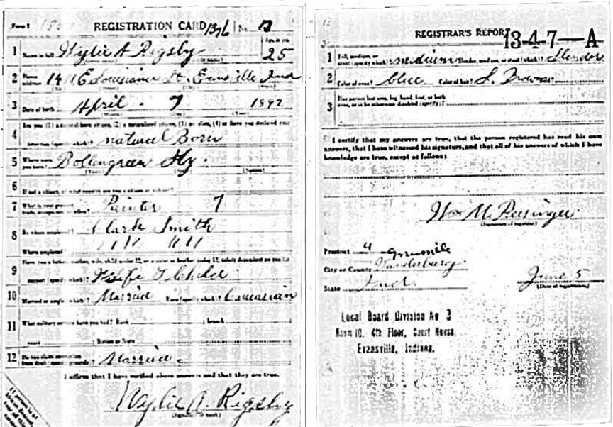 | Rigsby, Wylie | WWI | Draft Card | Sheila Wisdom-Hardin |