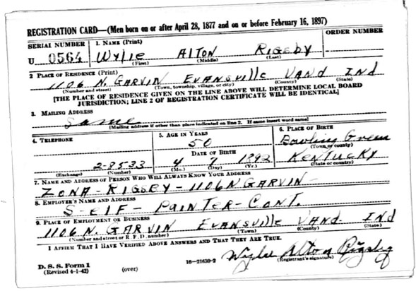 | Rigsby, Wylie | WWII | Reg. Card | Sheila Wisdom-Hardin |