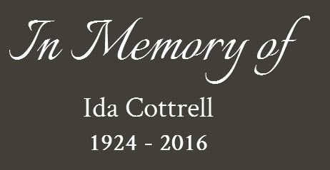 Ida Cottrell, 91 of Munfordville passed away Sunday, March 6 at her home surrounded by her family. Ms. Cottrell was born in Priceville on December 7, 1924 to the late George and Lula Willis Sharp and was the wife of the late Stanley Cottrell. She was a housewife and a member of the Dorsey Chapel Methodist Church.
