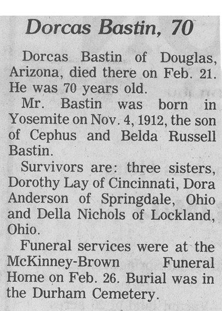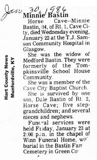 | Bastin, Minnie | - | - | 01/22/1986 |
