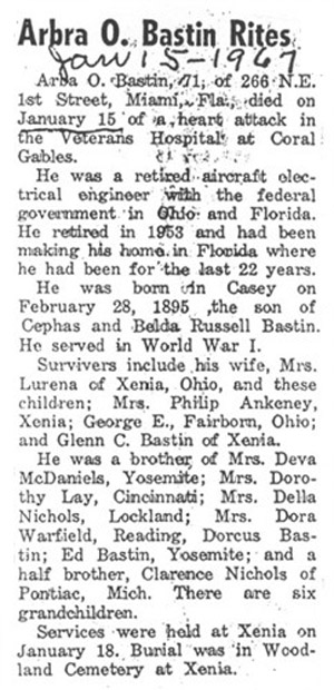 | Bastin, Arba O. | - | - | 01/15/1967 |