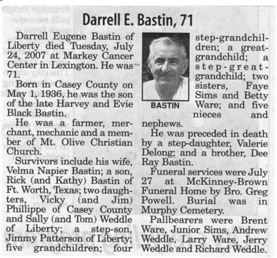 | Bastin, Darrell Eugene | 07/24/2007 |