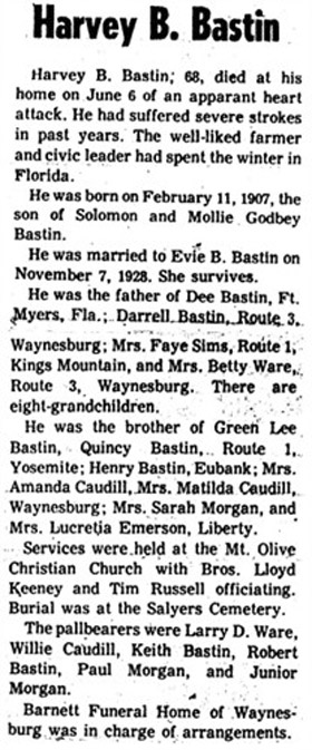| Bastin, Harvey B. | - | - | 06/06/1975 |