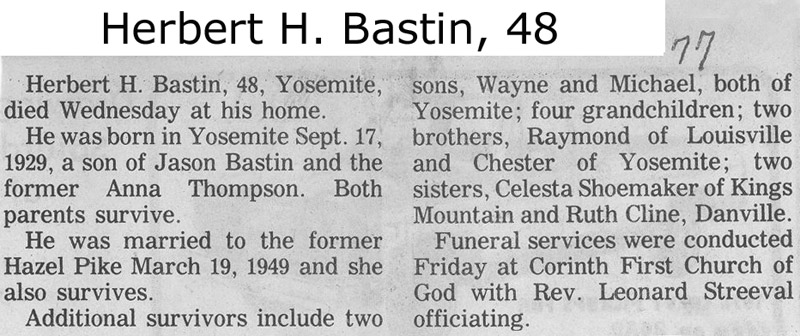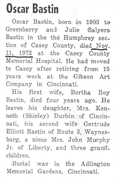 | Bastin, Garnett L. Sr. | - | - | 10/07/1972 |