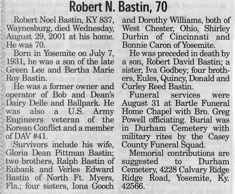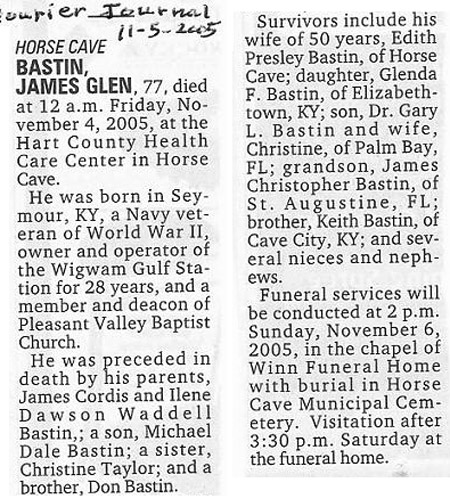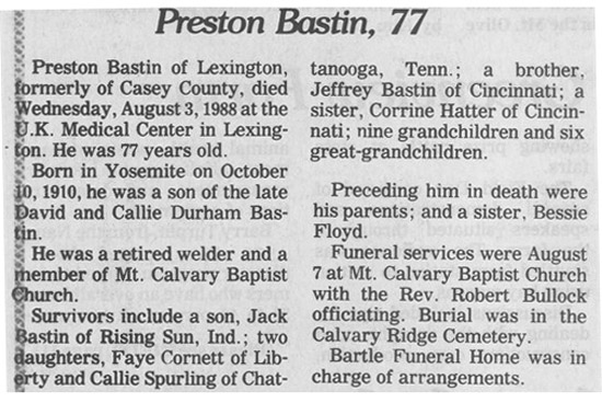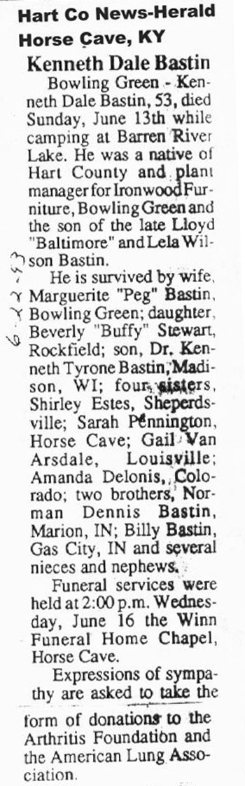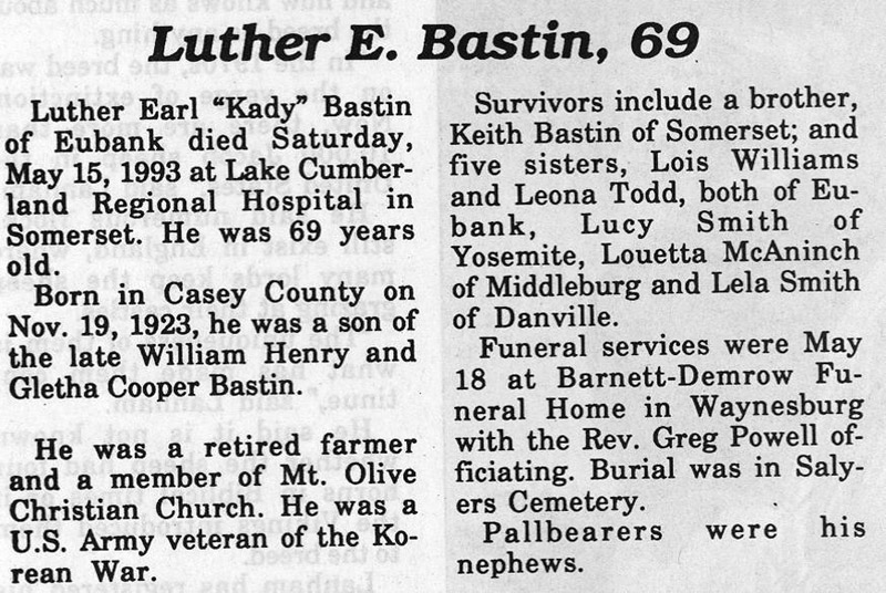 | Bastin, Luther Earl "Kady" | - | - | 05/15/1993 |