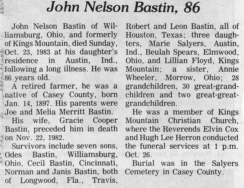 | Bastin, Gletha N. Cooper | - | - | 11/26/1968 |