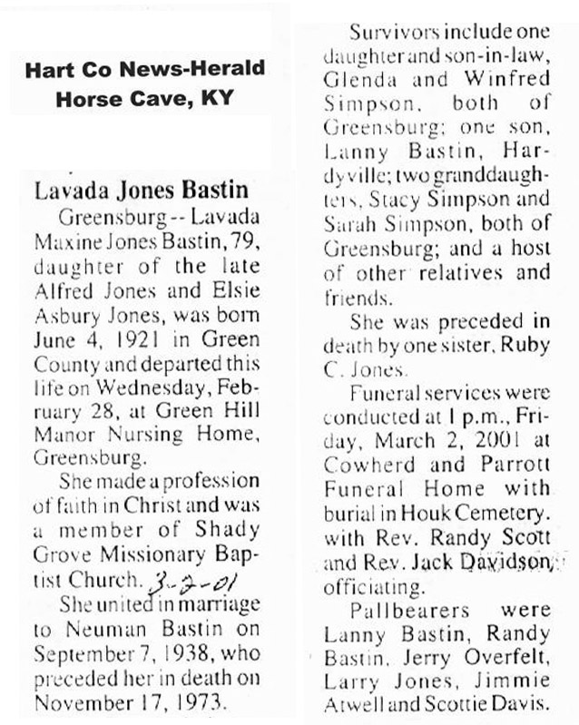 | Bastin, Lavada Jones | 02/28/2001 |