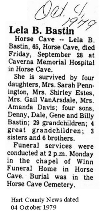 | Bastin, Lela B. Wilson | - | - | 09/28/1979 |
