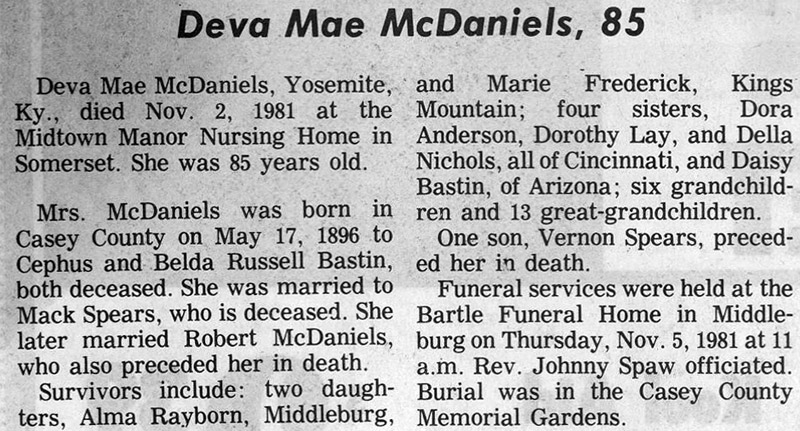 | McDaniels, Deva Mae Bastin | 11/02/1981 |