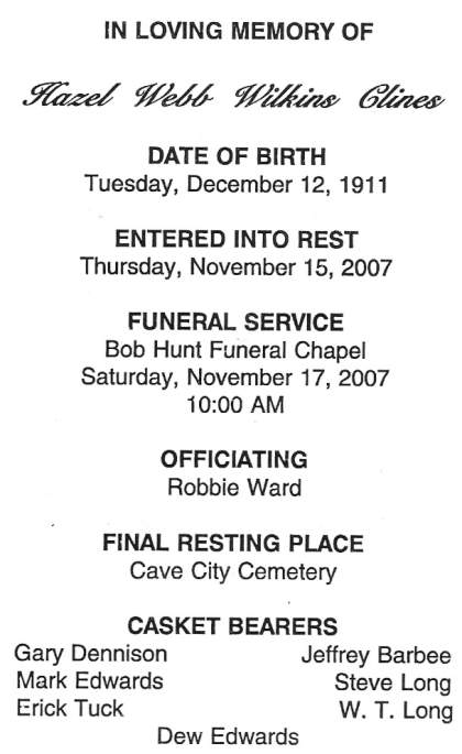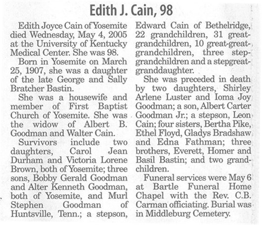 | Cain, Edith Joyce Bastin Goodman | - | - | 05/04/2005 |