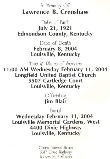 | Crenshaw, Lawrence Buell | E. Bastin |