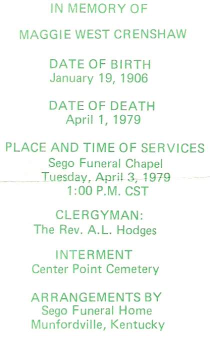| Crenshaw, Maggie West | E. Bastin |