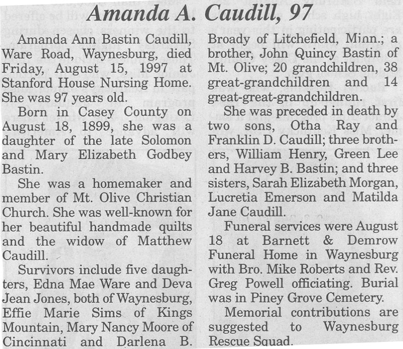 | Caudill, Amanda Ann Bastin | - | - | 08/15/1997 |