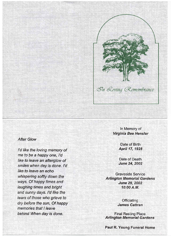 HENSLER Virginia Bee (nee Dickinson) - Beloved wife of Milton Hensler - Devoted mother of Milton (Connie)