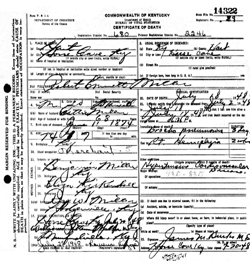 Gary contacted a grandaughter of Dorothy and was informed her maiden name was Miller. She mentioned a Ben Miller.