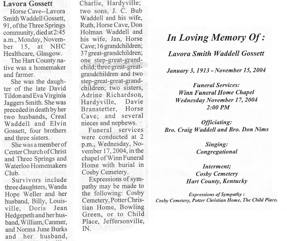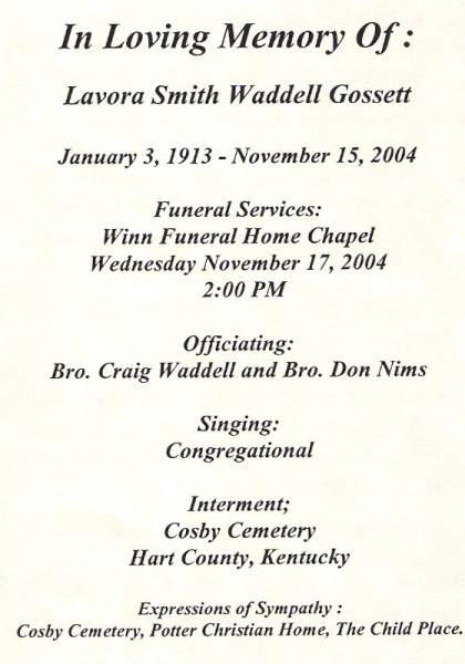 | Gossett, Lavora Mildred Smith Waddell | Edith Bastin |