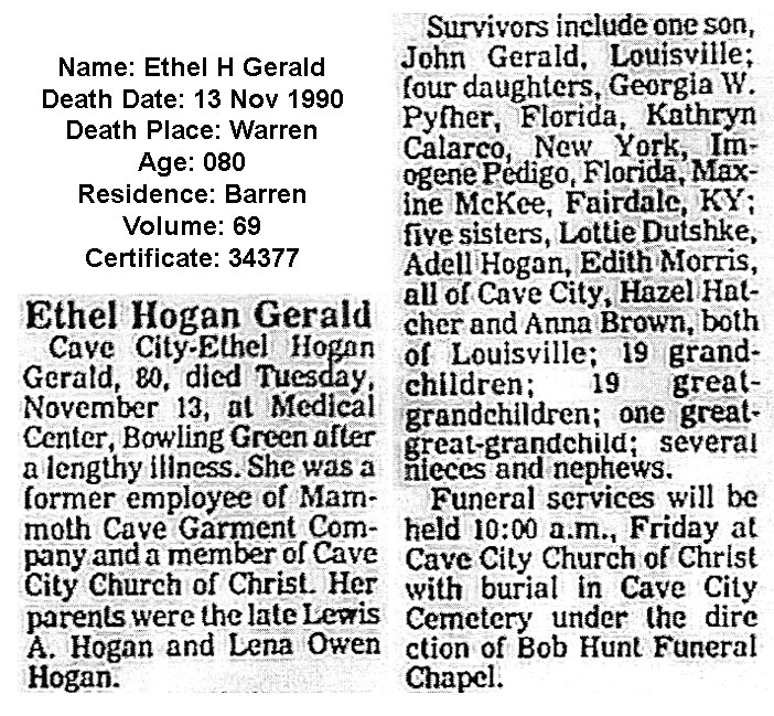 | Gerald, Johnnie B. | Caldwell/Barren |