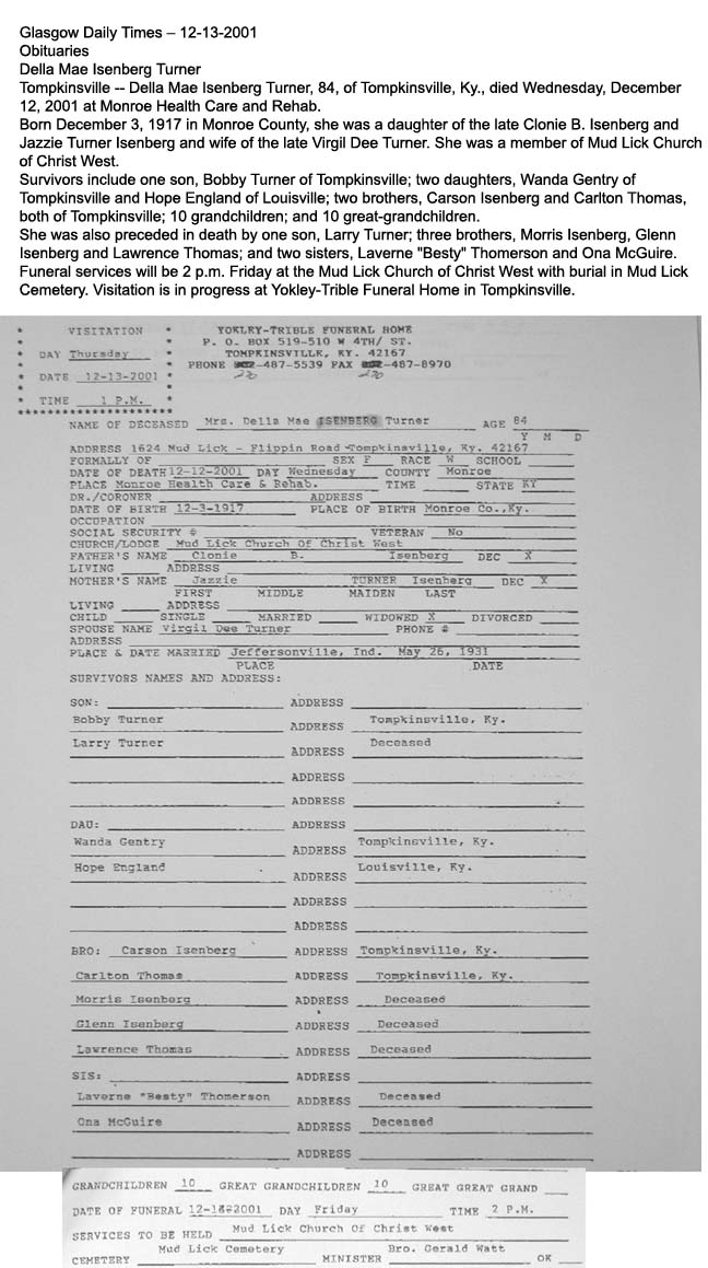 | Turner, Della Mae Isenberg -- TEXT VERSION |