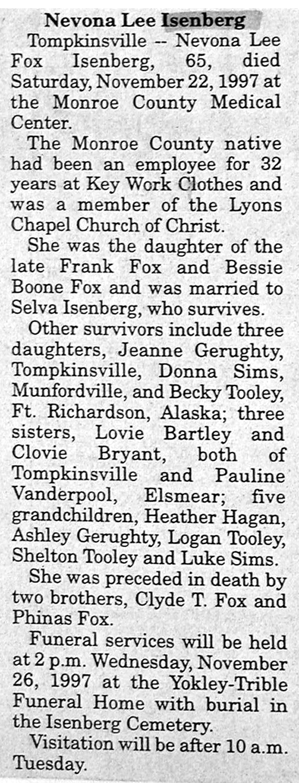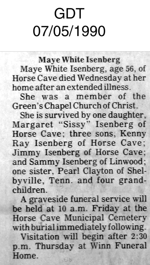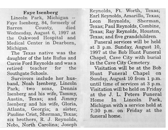 | Isenberg, Rheba Maye Hayes -- TEXT VERSION |