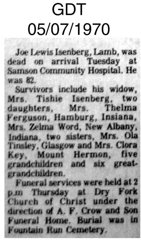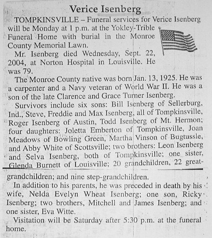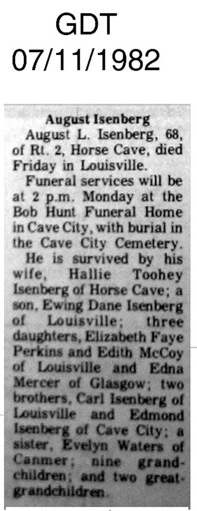 | Isenberg, Henry Prentice "Brownie" -- TEXT VERSION |