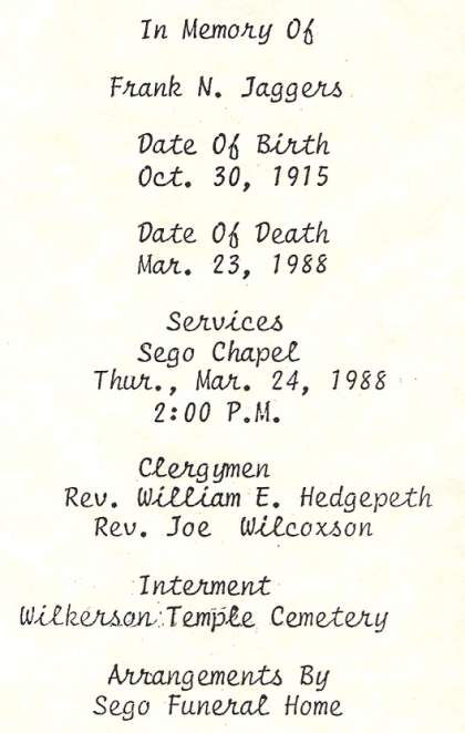 | Jaggers, Martin VanBuren | Edith Bastin |