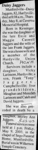 | Jaggers, Susie Louise Logsdon | Edith Bastin |