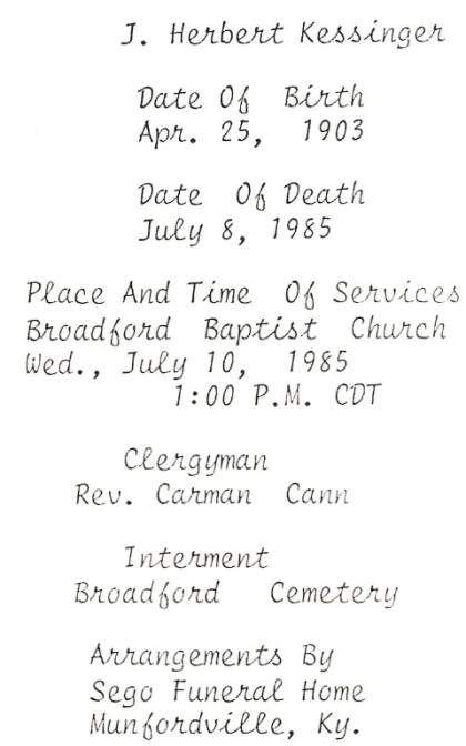 | Kessinger, J Herbert | E. Bastin |