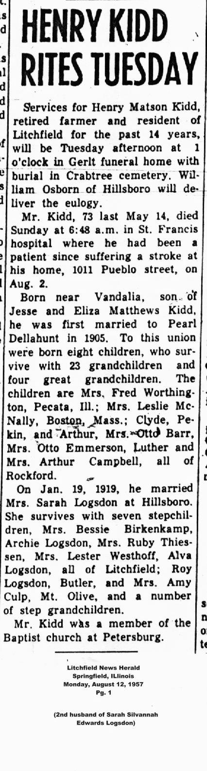 | Kidd, Sarah S Edwards Logsdon | Edith Bastin |