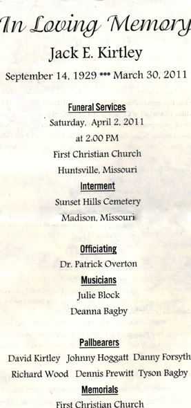 Jack E. Kirtley, 81, of Columbia died on Wednesday, March 30, 2011, at his home.