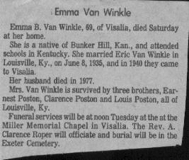 | VanWinkle, Emma Poston | Edith Bastin |