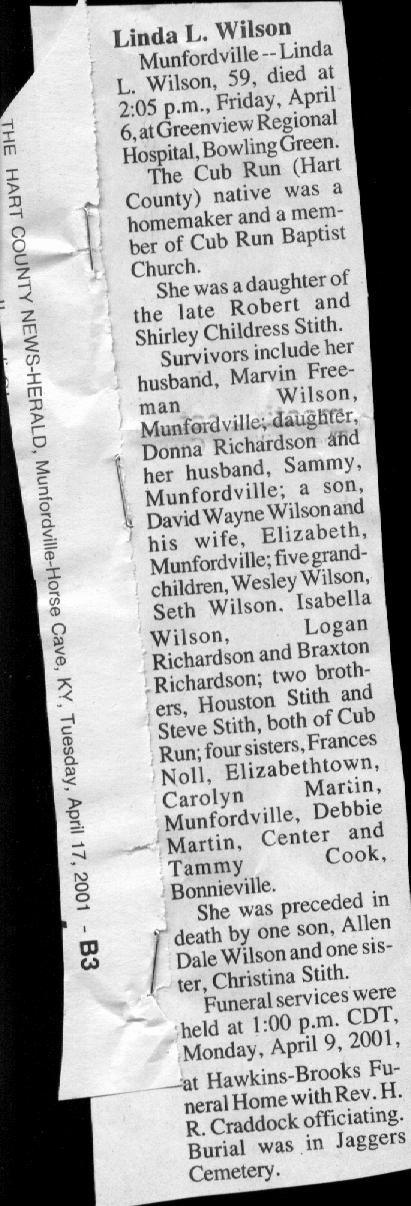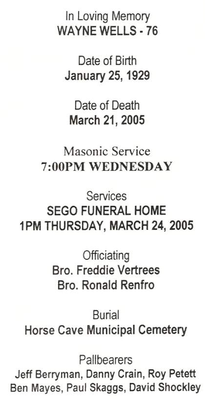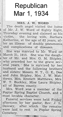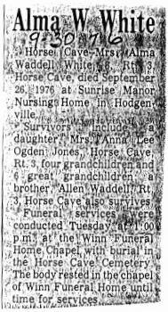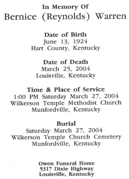 | Walters, Oma Perkins | Barren/Hart | 06/09/2012 | Sandra K. O'Banion |