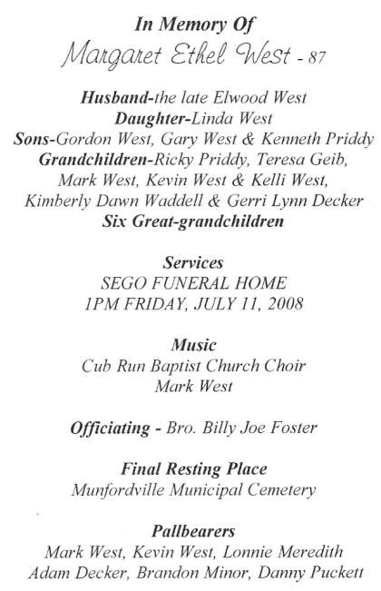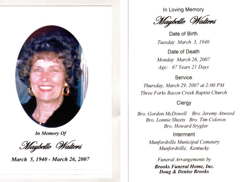 | Walters, Maybelle, Funeral Card | Sandra K. O'Banion |