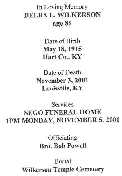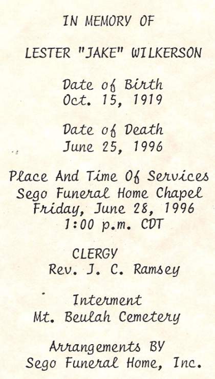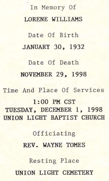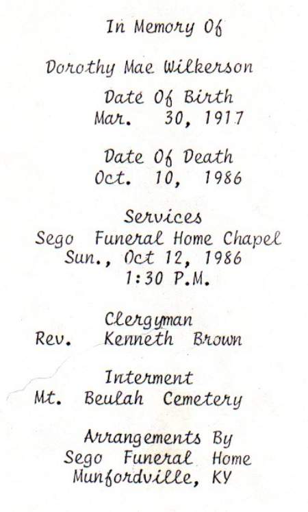 | Wilkerson, Dorothy Mae, Funeral Card | Sandra K. O'Banion |