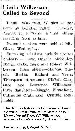 | Wilkerson, Malinda Jane | Edith Bastin |