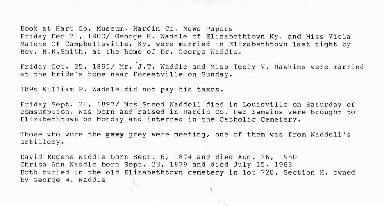 | Waddle, George David | Edith Bastin |