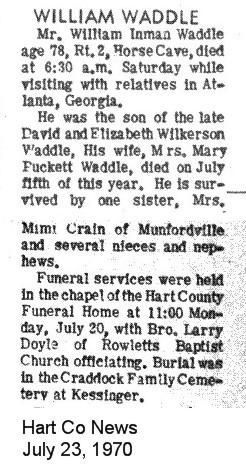 | Waddle, William Robert Inman | Edith Bastin |