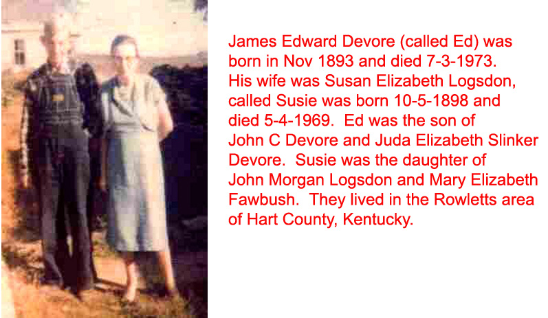 | Ed & Susie Devore | John C. & Judith Slinker Devore | John W. & Mary Devore Martin | Mary Jane "Mollie" Devore Martin King Brooks |